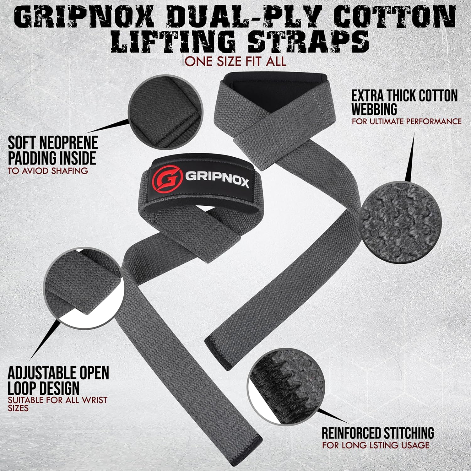 GRIPNOX Lifting Straps are designed for serious athletes who demand the best in grip support and wrist stability. Crafted from premium cotton-neoprene blend material, these straps are engineered to withstand the most demanding training sessions. Whether you’re performing heavy deadlifts, barbell rows, shrugs, rack pulls, or any pulling movement, GRIPNOX straps eliminate grip fatigue so your muscles can work to their full potential. The thick neoprene padding prevents chafing and irritation during extended sessions, while the reinforced stitching ensures long-lasting durability. Available in multiple colors and sizes to suit every athlete.