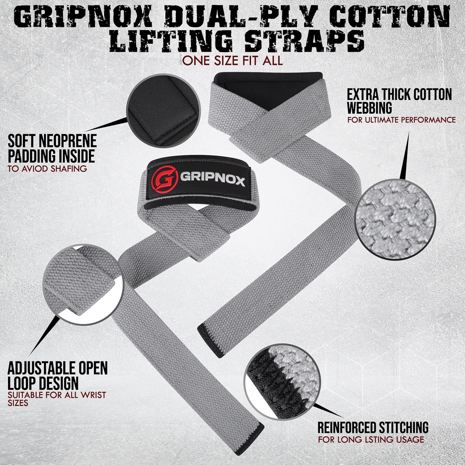 GRIPNOX Cotton Lifting Straps – Light Gray