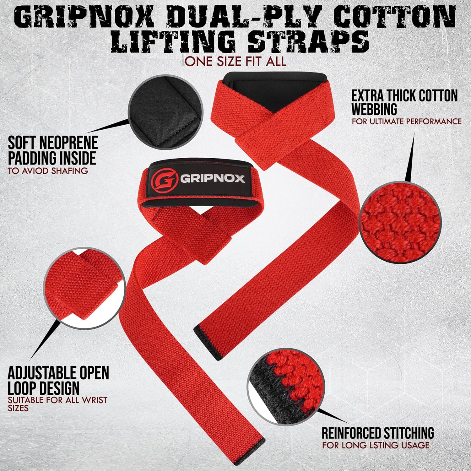 GRIPNOX Cotton Lifting Straps – Red