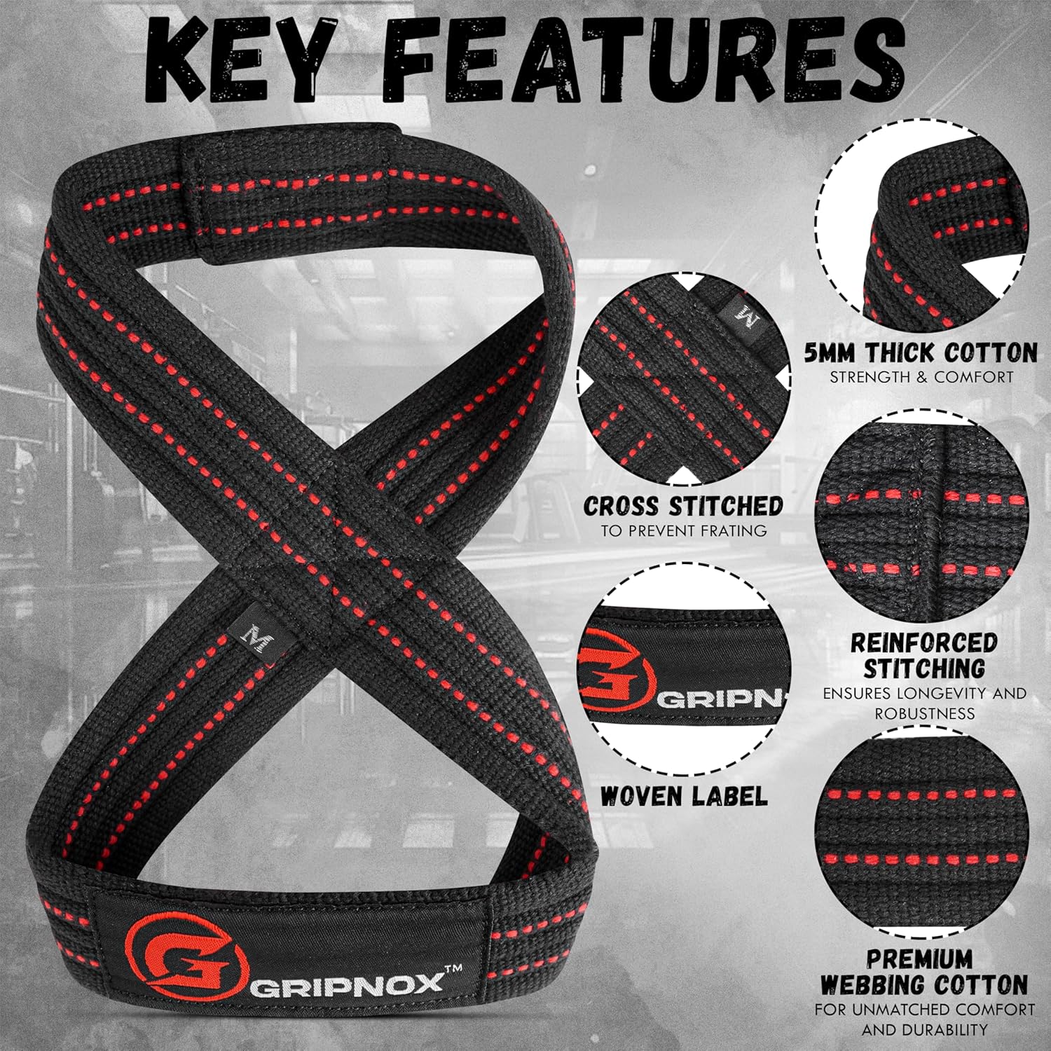 GRIPNOX Figure 8 Lifting Straps – Black Red