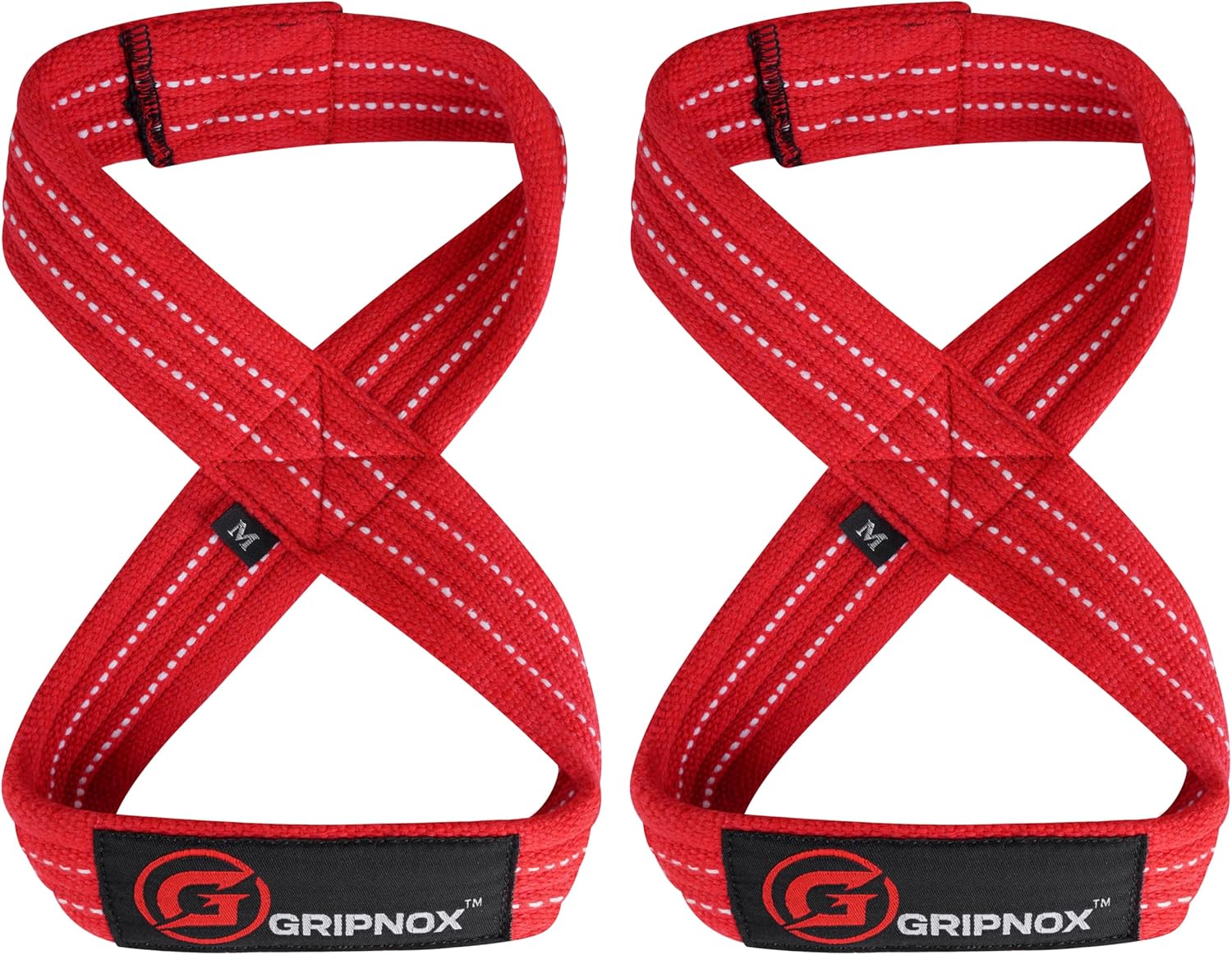 GRIPNOX Figure 8 Lifting Straps – Red White